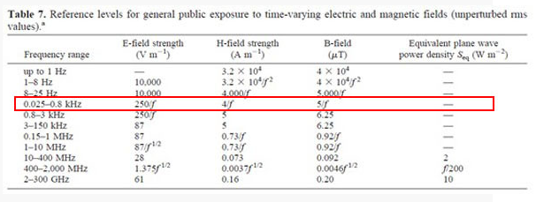 1,頻率為50Hz的電磁場輻射限值