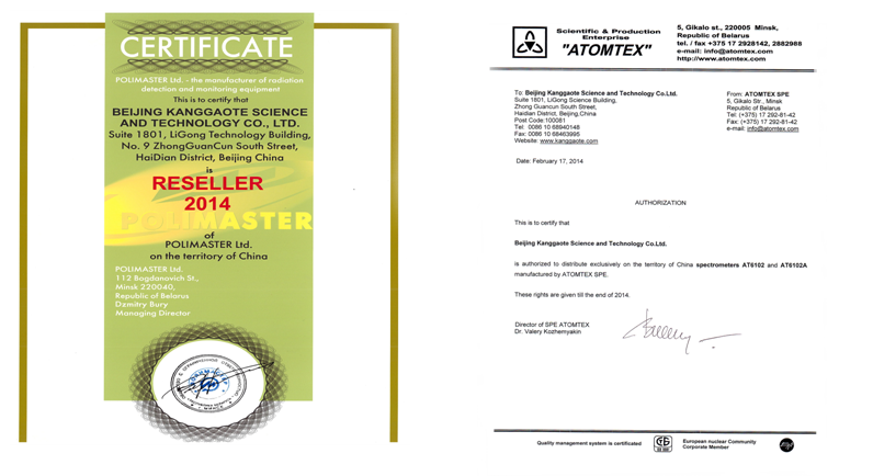 北京康高特科技有限公司榮獲白俄羅斯Atomtex和Polimaster兩家公司今