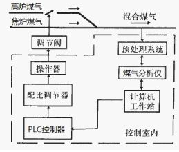 煤氣混合站通常是將高爐煤氣與焦爐煤氣加壓后再混合,形成穩定的混合煤氣送往工業用戶作為生產燃料,混合煤氣熱值要求穩定在一定值。為保證煤氣熱值的穩定,*必須測量混合煤氣的熱值,并指導調節煤氣混合比例,即高焦比。