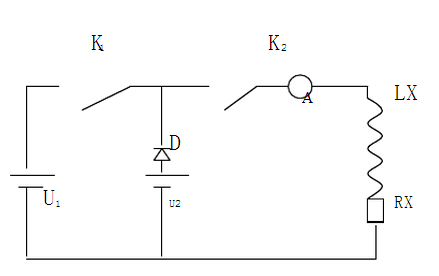 工作時取U1為U2的10倍以上,U2為電橋電源,D的反向電壓應大于U1合K1,K2待電流表指示電流達I=U2/Rx時,斷開K1,這樣便可很快地測量了。