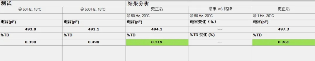 如上圖所示,八根套管的絕緣性能均處于新,從介損來看并無異常,電容和銘牌相比變化在正常范圍內(nèi)。(ITC為溫度矯正,旨在在不同溫度下能夠以同樣的20℃進行比對,并以顏色顯示在結果上,綠色為全新,黃色為干燥,橙色為可能潮濕,紅色為注意)